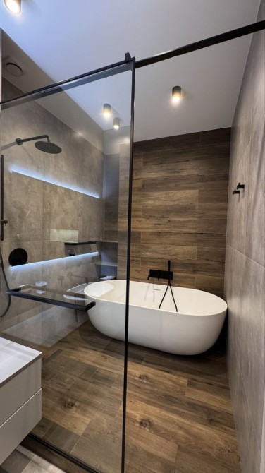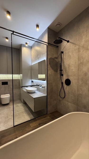 Стильний ремонт і санвузол з душем та ванною.