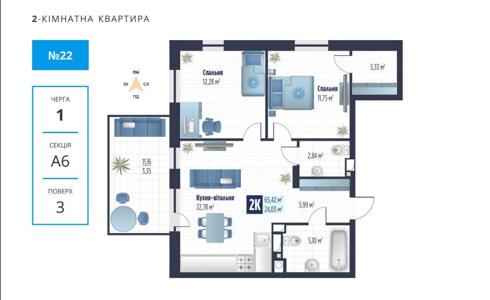 • Загальна площа 65.42 м2