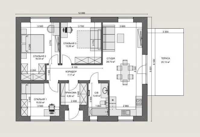 • Загальна площа 96 м2