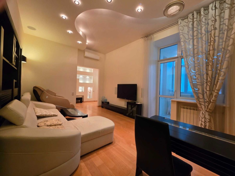 АКТУАЛЬНА. Шота Руставелі 36 . Центр столиці! Поруч метро "Олімпійська", "Площа Українських Героїв", "Палац Спорту". квартира облаштована всім необхідним для комфортного життя: 2 кондиціонери, холодильник, варильна поверхня, витяжка, духова шафа, посудомийна машина, пральна машина, бойлер, домофон та Wi-Fi, веліка гардеробна . У квартирі якісний дизайнерський ремонт у строгих світлих тонах . Є ліфт. Довгостроково.