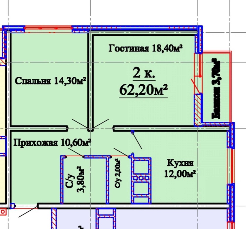 • Загальна площа 62 м2