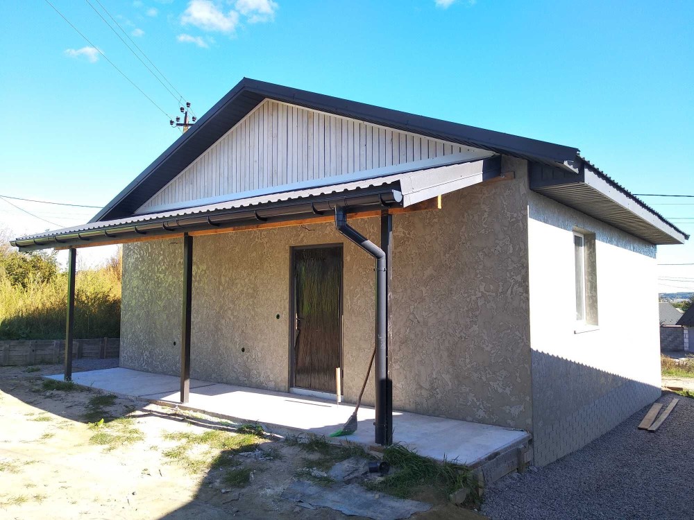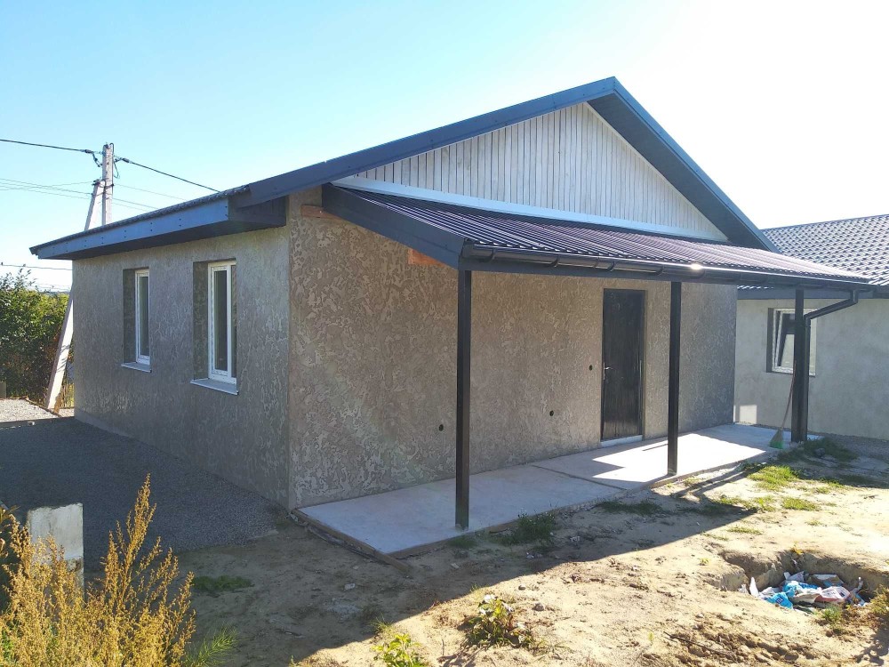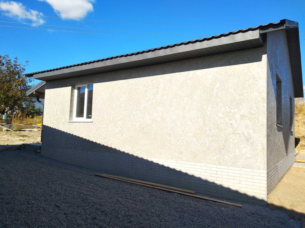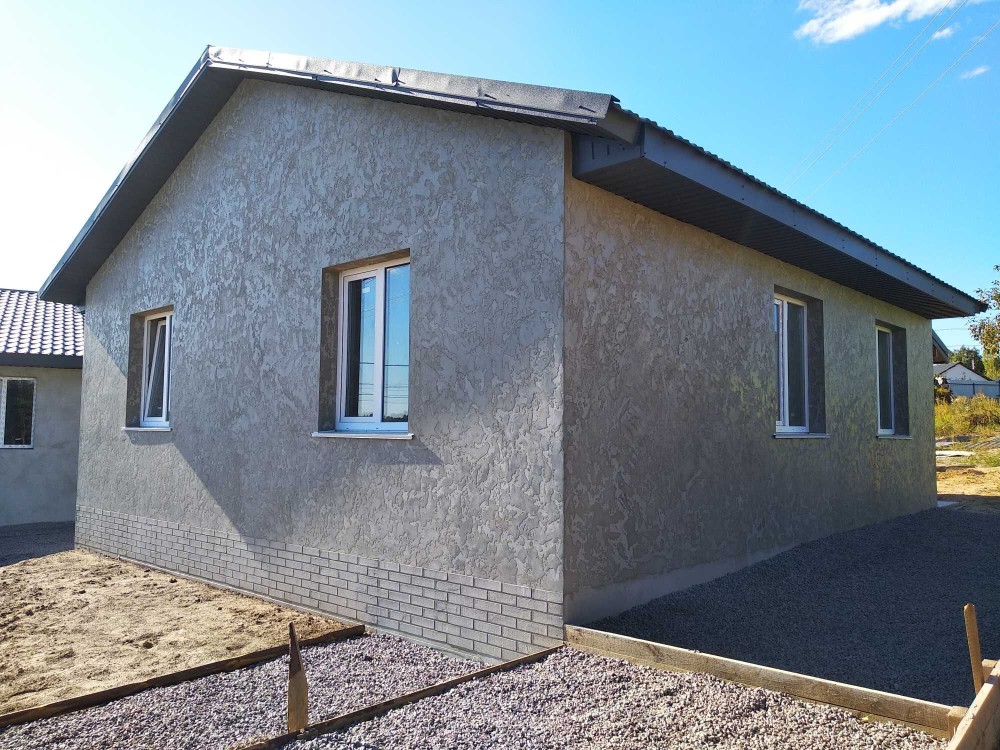 Будинок з газоблоку. Ззовіні утеплений та оздоблений. Всередині чистова штукатурка стін.