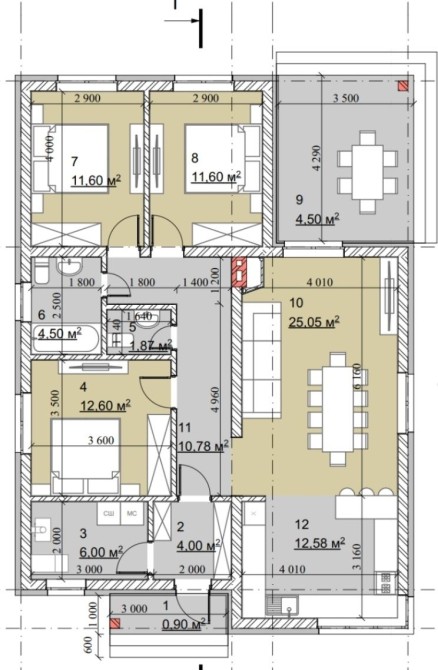 3 спальних кімнати