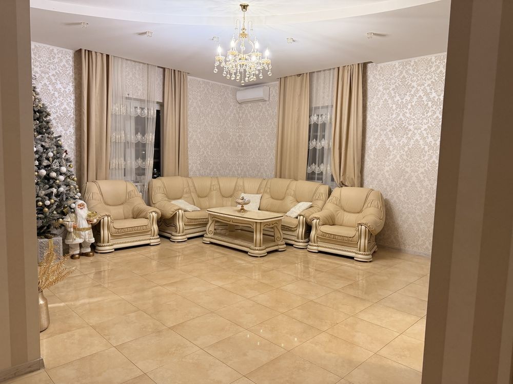 Дом 2 этажа 290 кв общая , 8 соток земли . На территории бассейн 8*5 , беседка , чан , сан узел , вольер большой для собак , пальмы , озеленение.