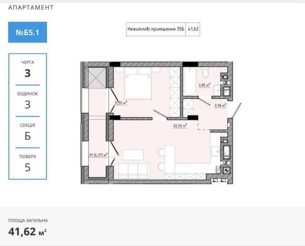Площа: 41.62м²