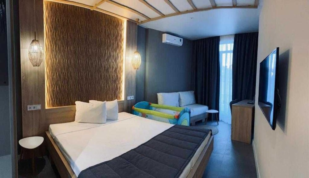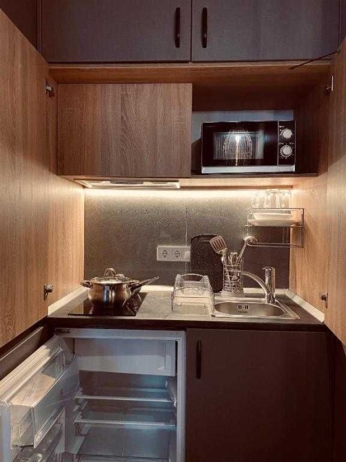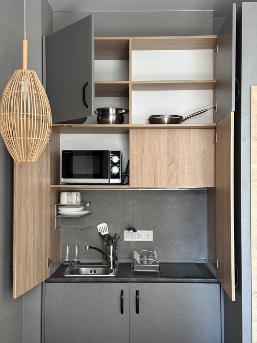 В номере есть всё для комфортного отдыха: интернет, смарт телевизор, холодильник, чайник, микроволновая печь и электрическая печь с вытяжкой.
