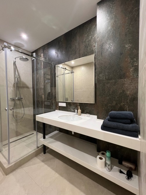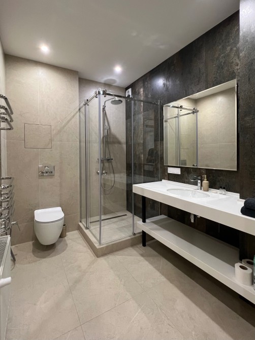 • Современная ванная комната с душем, фен,