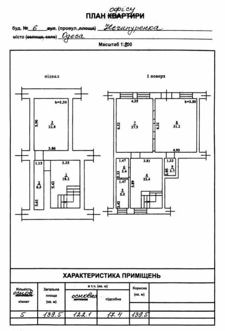 • Подвал =47 м.кв.(2 кабинета с ремонтом)