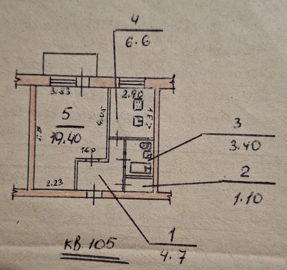 • Площадь кухни 6.6 м2