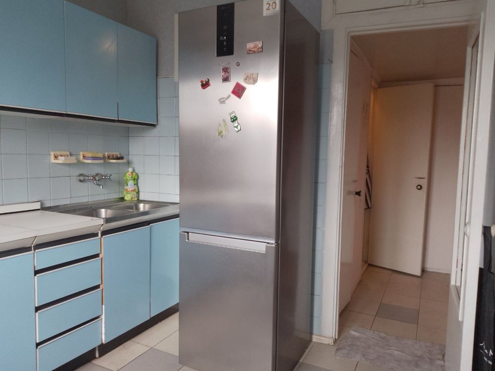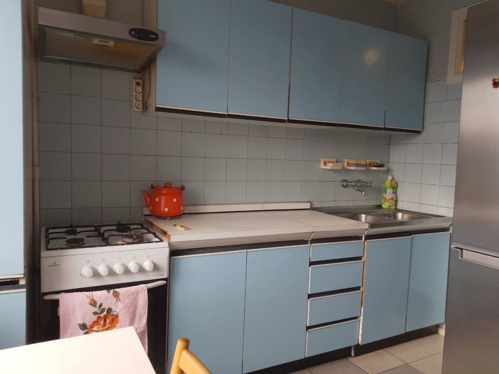 Встроенная кухня с газовой 4 комфорной плитой с духовкой. Двухкамерный вместительный холодильник.