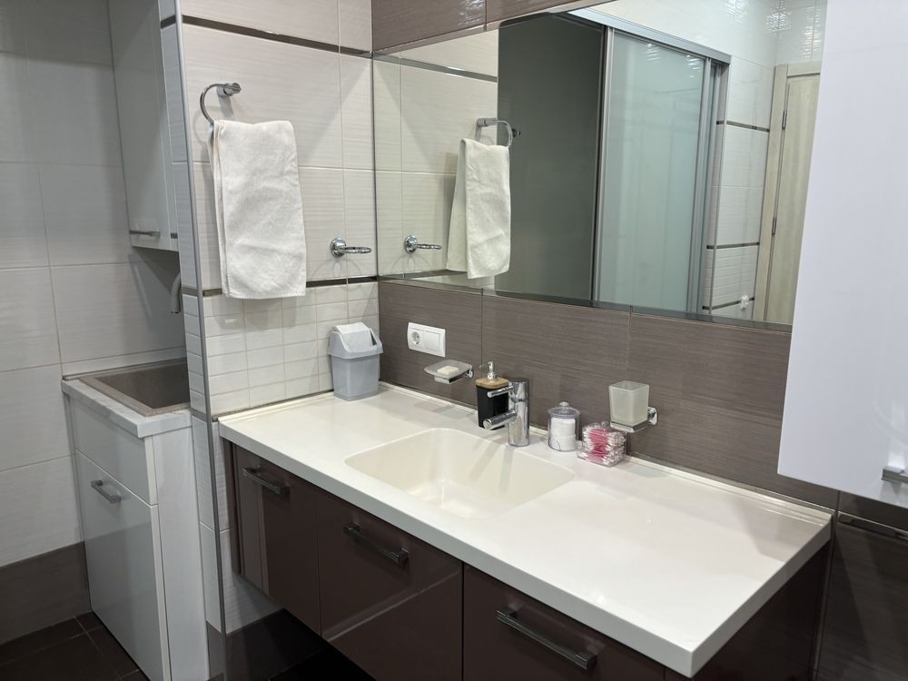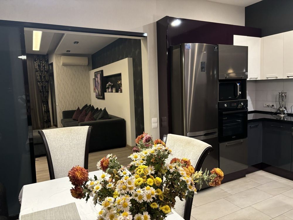В квартире сделан современный дизайнерский ремонт из высококачественных материалов.