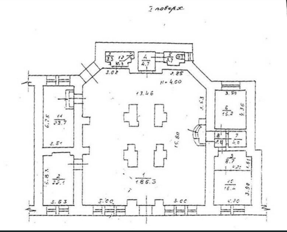 Фасадное помещение=340 м², Состоит: