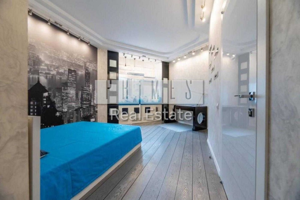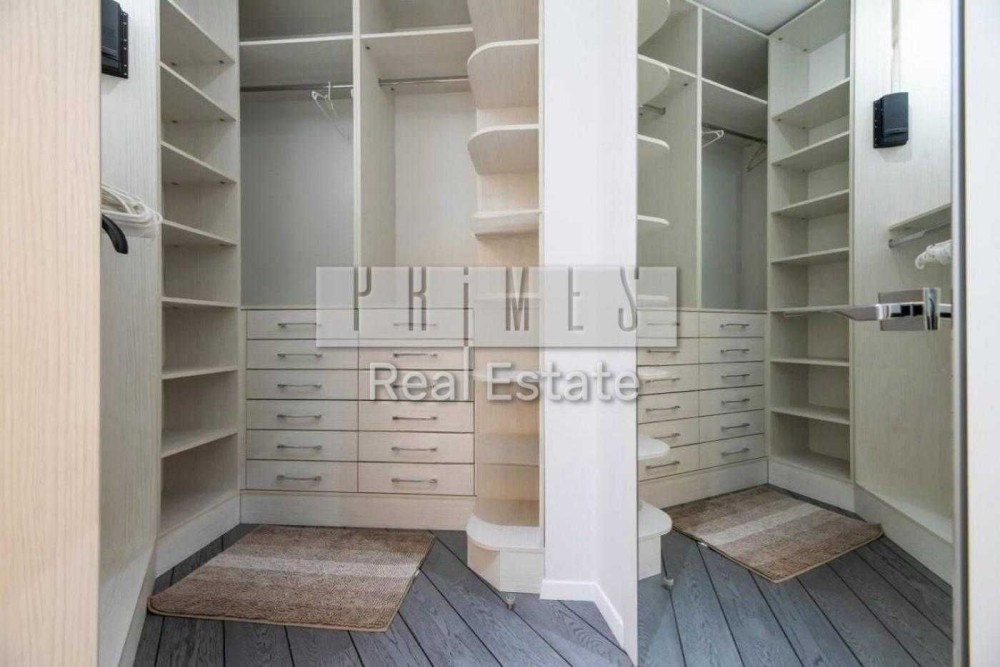 Планування: велика окрема вітальня, в якій розташовано багато місць для зберігання, комфортний диван і телевізор, 2 спальні з двоспальними ліжками, одна з них з балконом, затишна світла дитяча з власним санвузлом і гардеробною, всього 3 санвузли, ще одна велика гардеробна, а також велика кухня з їдальнею і балконом. На кухні встановлений острів, вбудовані два холодильники та посудомийна машина.