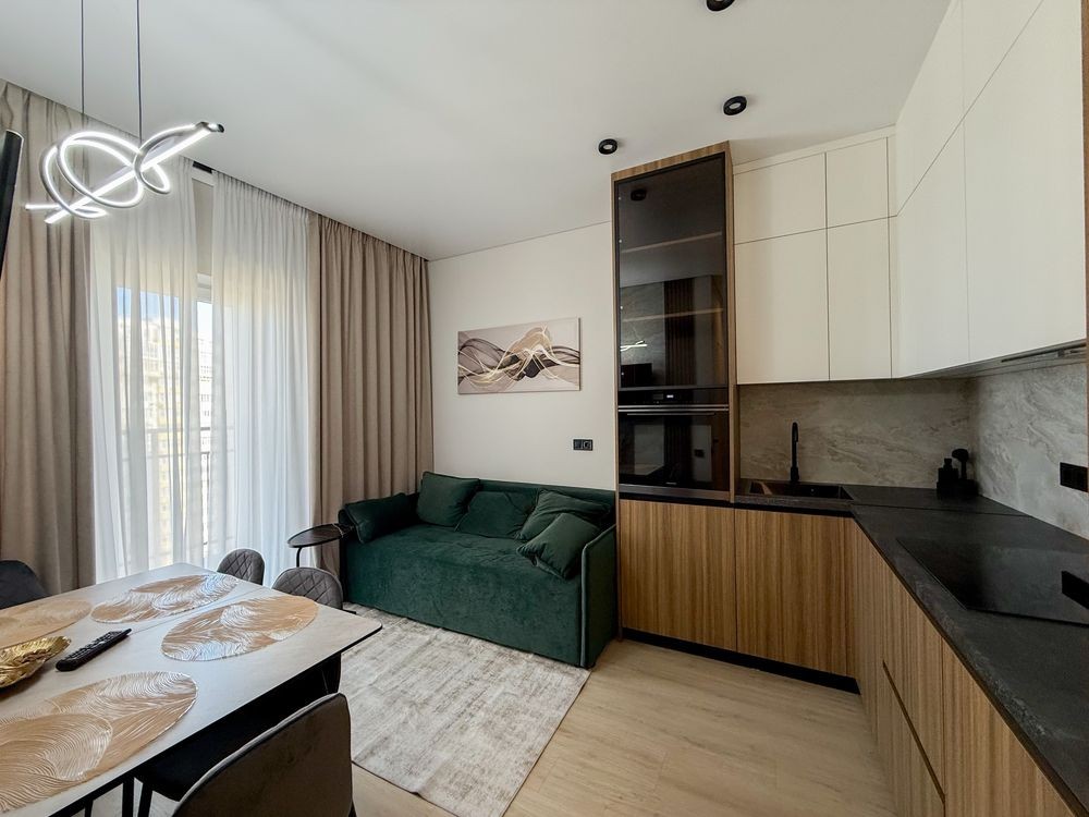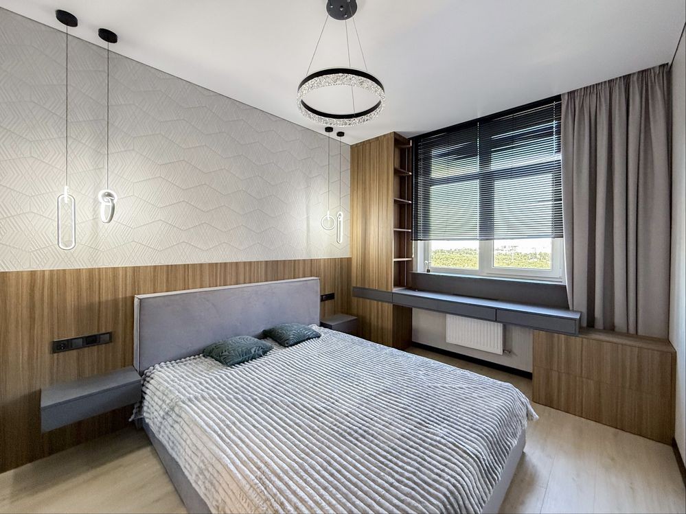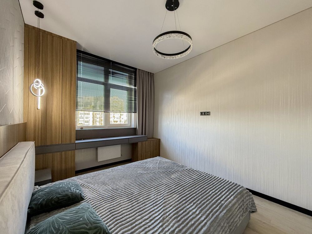 Перша здача. Пропонується в оренду сучасна квартира в новобудові біля м. Житомирська (Берестейський пр-т, 131а). В будинку є генератор (завжди є опалення, вода та працює ліфт). Квартира укомплектована всіма необхідними меблями та технікою. У кімнаті - двоспальне ліжко, розкладний диван, письмовий стіл, кондиціонер, телевізор, велика шафа для одягу. Санвузол суміщений, душова кабінка. Тихий двір, велика парковка. До метро Житомирська - 10 хвилин пішки. Вартість 16000 грн. Умови оренди: оплата за два місяці та послуги рієлтора (50%). комісія: 50%