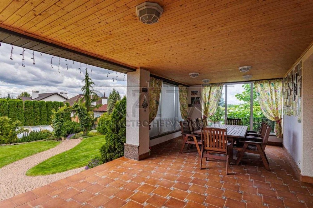 Це не просто дім — це місце сили, затишку і гармонії, де кожна деталь продумана до дрібниць. На доглянутій ділянці площею 12 соток — професійний ландшафтний дизайн, величні ялини, декоративні насадження та куточки для відпочинку на свіжому повітрі.