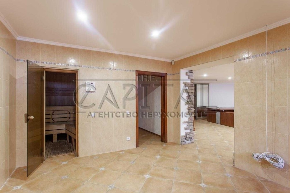 4 спальни, кухня-студия, 2 гардероба, кабинет, сауна, гараж, басейн, беседка с барбекю, домик охранника.