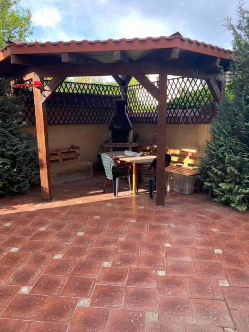 Уютная беседка на заднем дворе – идеальное место для отдыха.