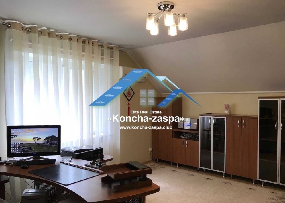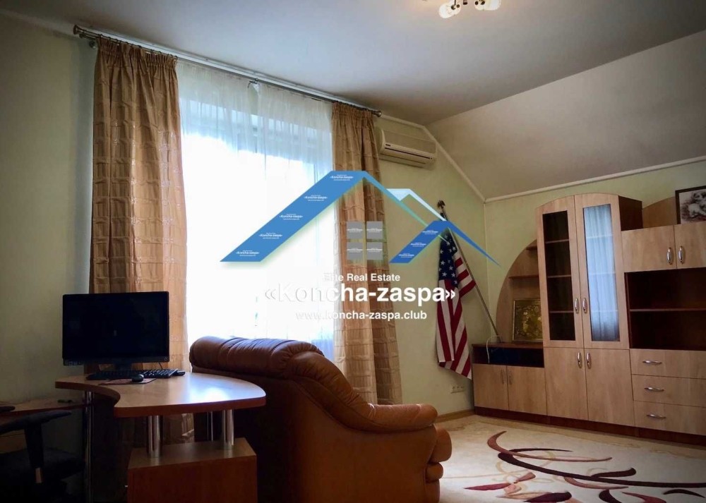 Дом полностью меблирован и оснащен бытовой техникой. В доме 3 спальни, детская, кабинет, гостиная, кухня, 3 санузла, хозяйственная комната, прачечная, видео наблюдение дома и участка, охрана. В домике для отдыха расположены сауна (электро и дровяная), бассейн, комната отдыха с камином, бильярдная, спортзал и летняя кухня. На участке также есть домик для охраны, барбекю и зимняя беседка для отдыха с камином, крытая парковка