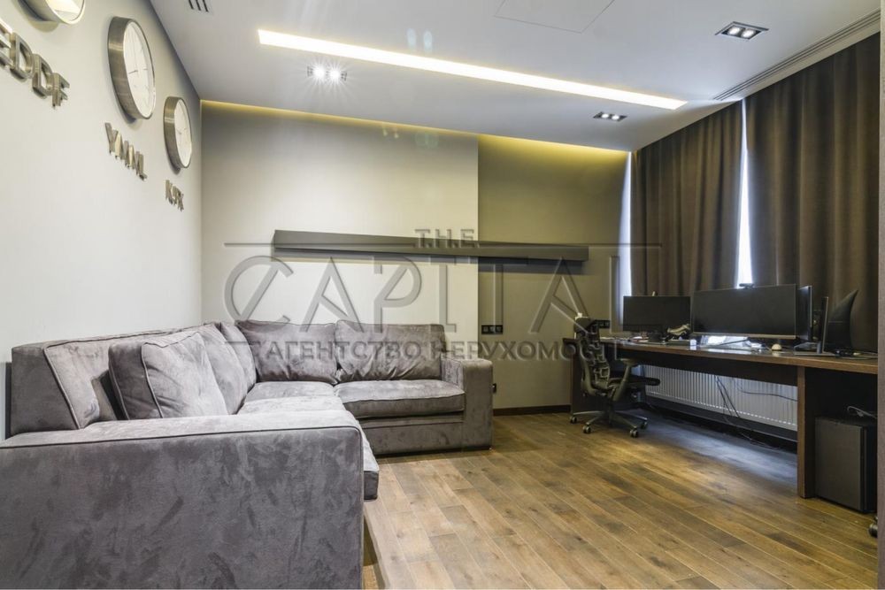 на першому поверсі є великий кабінет , туалетна кімната , гардеробна , пральна та хозяйська кімната ( там знаходиться парова праска, газовий котел , пральна машина з сушкою та місце складання хоз речей для прибирання ) також є вихід у гараж