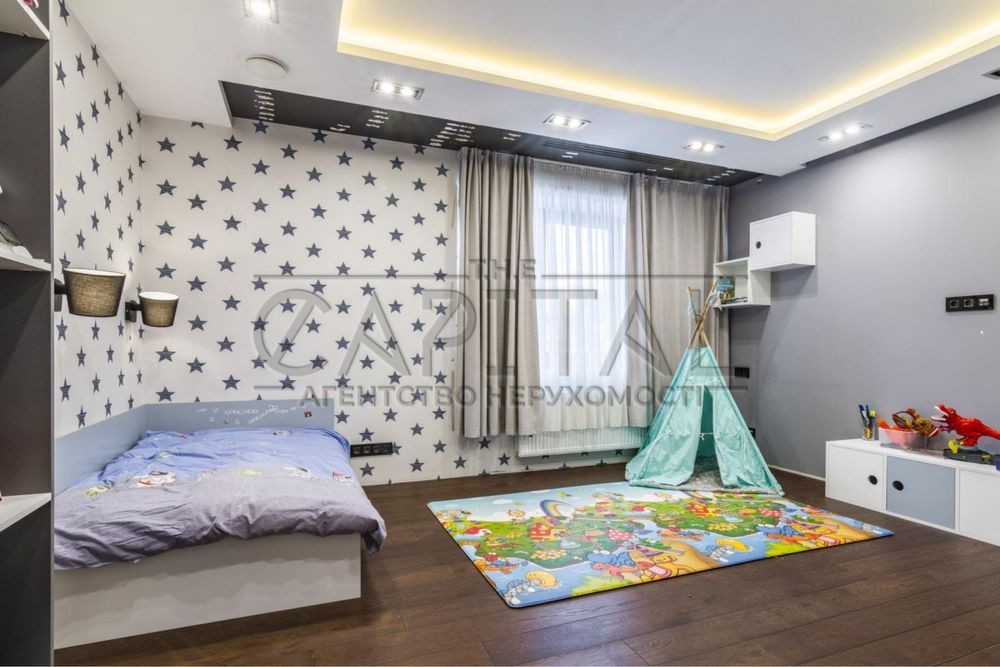 Далі йде дитяча кімната з меблями, а також кімнатою гардеробною з місцем та органайзерами для іграшок .