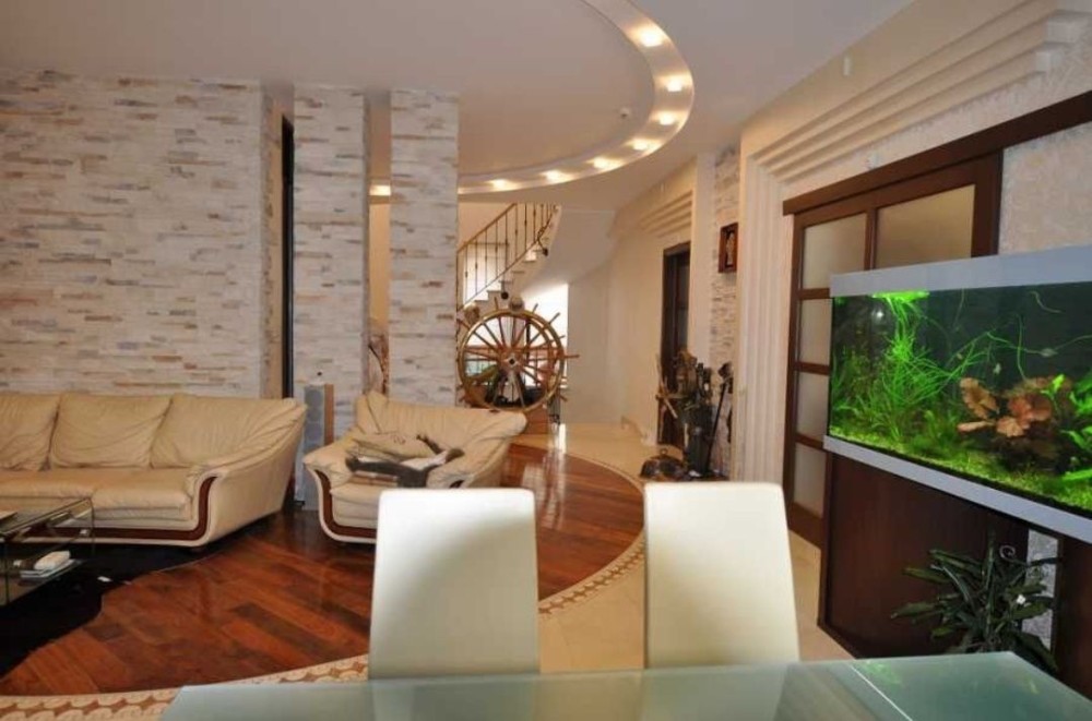 Аренда Дома с Бассейном в Совиньоне, роскошный дом с бассейном в поселке Совиньон-1. 3 этажа, площадь 450 метров, 4 спальни, кабинет, гостиная и кухня с выходом на террасу. Подвал, сауна, гараж, спортивный зал Дом укомплектован брендовой мебелью и техникой. Бассейн во дворе, гостевой домик, есть сауна, 10 соток-красивый ландшафт, беседка с барбекю, гараж и место для авто. К дому широкий подъезд.
