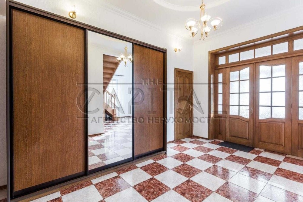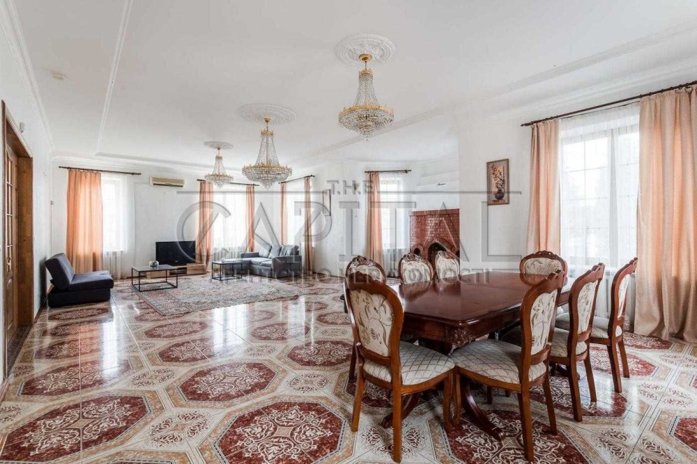 Тамбур, передпокій, просторий хол, кухня з вбудованою побутовою технікою, санвузол, житлова кімната (великий камінний зал), сходи на другий поверх.