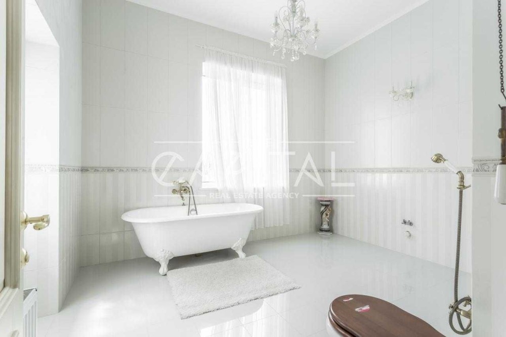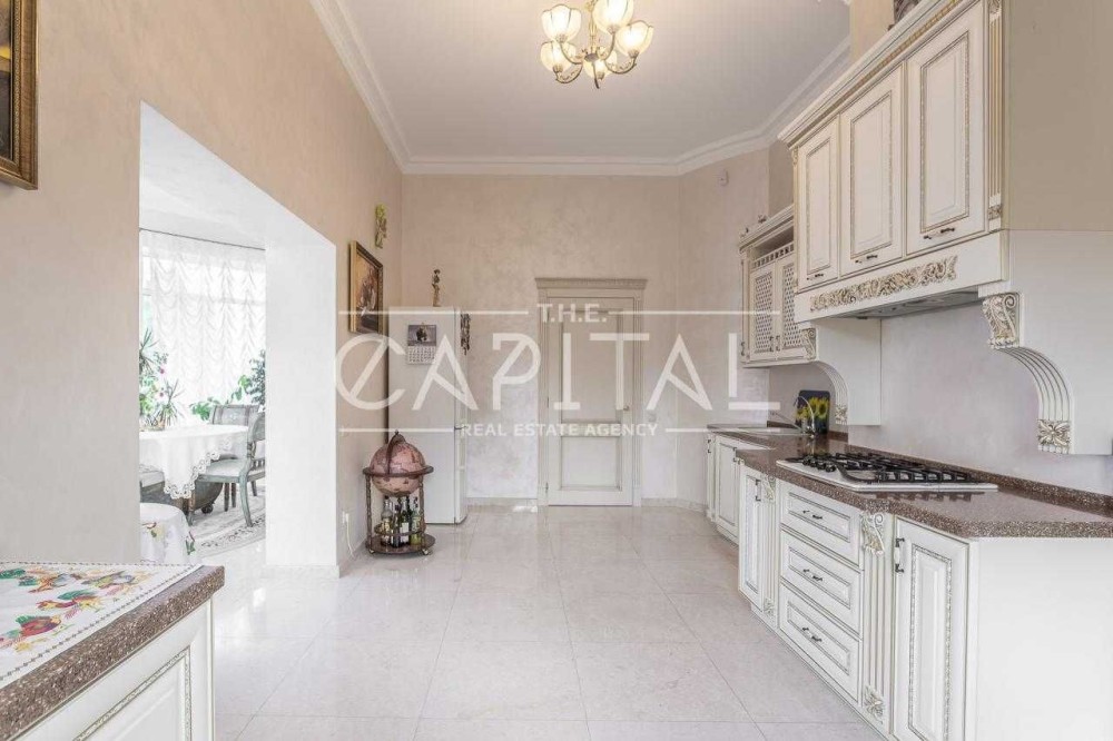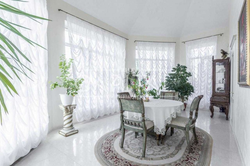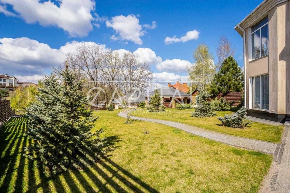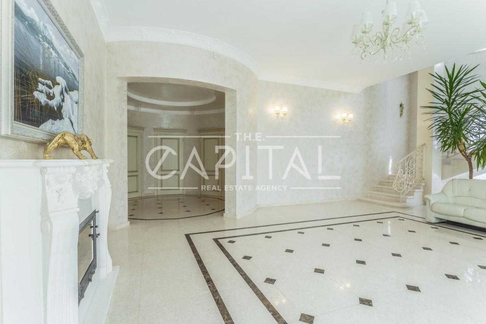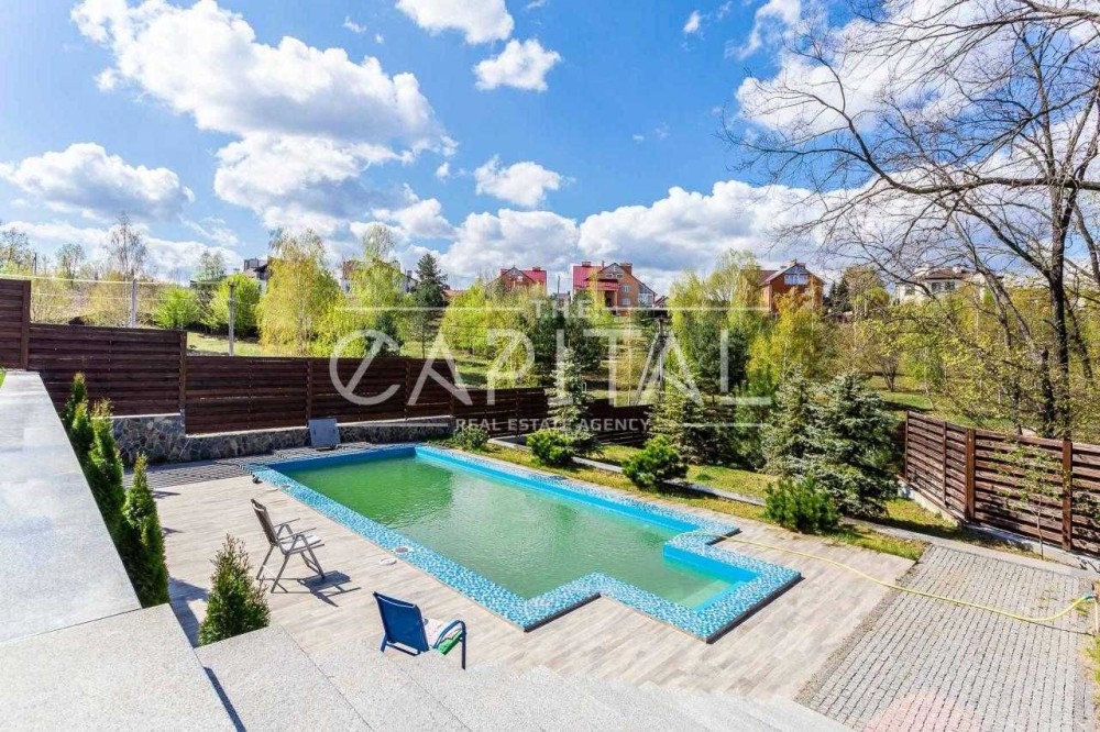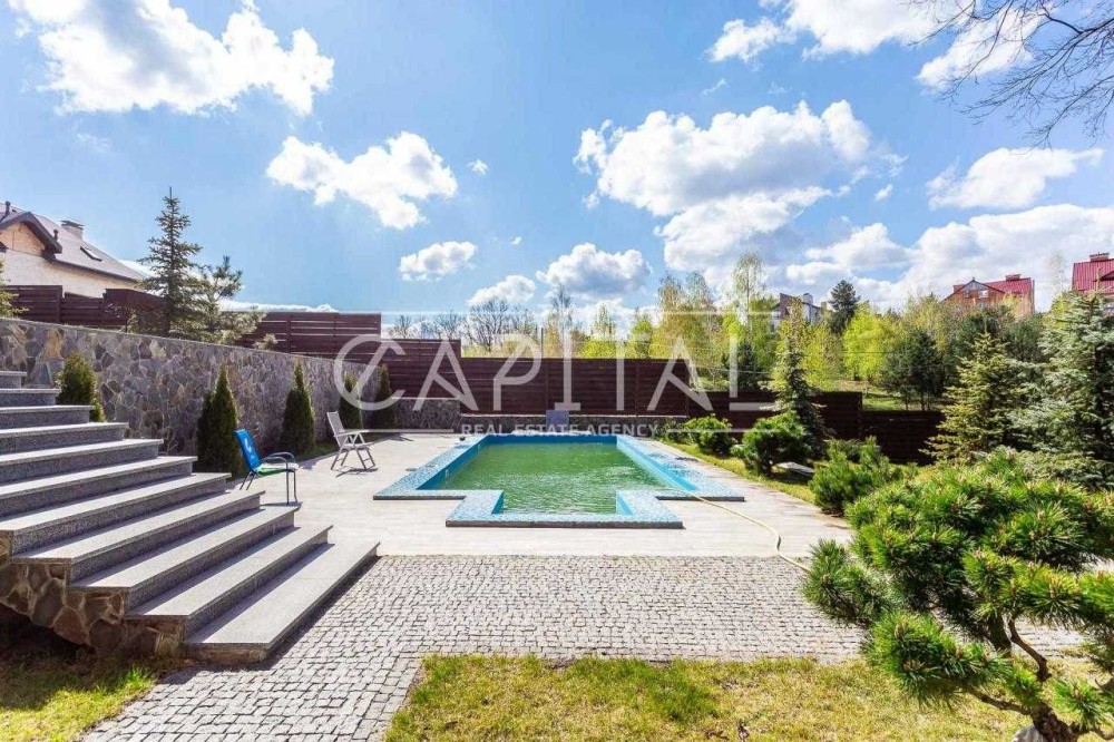 Лісники, котеджне містечко «Зелена роща». Будинок 2017 року будівлі в ексклюзивному місці на пагорбі з видом на Київ, Козин та Лісники! Площа будинку 610 кв.м., ділянку 18 соток, можна розширити до 50. У будинку просторий хол з мармуровим каміном, великий кабінет, кухня, що переходить в зимовий сад з панорамним виглядом, 5 спалень 3 зі своїми санвузлами та вбиральнями. Також у будинку є більярдна та винний льох, опалювальний гараж на 3 авто. На ділянці є сауна з кімнатою для відпочинку, відкритий басейн 10.5х4 метри, альтанка, генераторня. Будинок побудований з цегли обслуговування економічний. Зовнішнє оздоблення будинку – іранський травертин та граніт. Внутрішнє оздоблення – підлога та сходи з мармуру, підлога в спальнях з натурального масиву. У будинку встановлені газовий та електричний котли, система очищення води, кондиціонери, водяний підігрів підлоги, вікна Rehau Brillant-Design, охоронна сигналізація, оптоволоконний інтернет, супутникове телебачення, блискавкозахист, автополив. Свердловина 108 м, електрика-25 кВт.