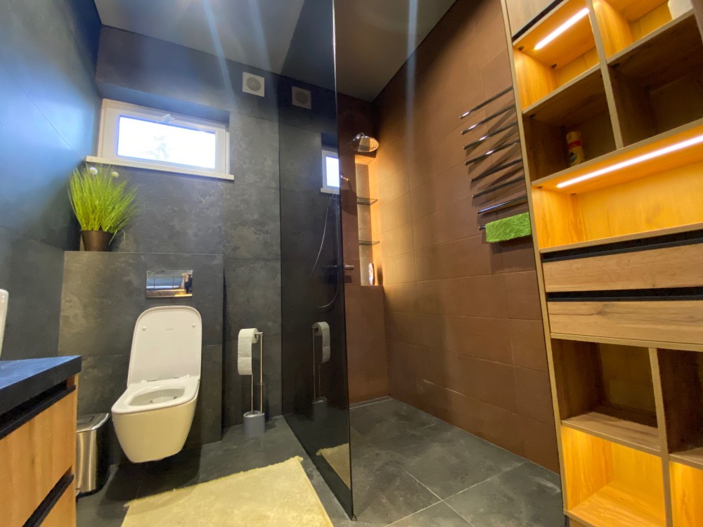 В доме 3 отдельные спальни, большой зал с кухней и выходом на террасу. Также есть гардеробная комната.
