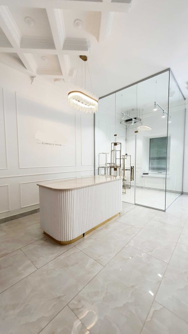 Планировка включает один просторный зал, подсобное помещение с подъемником в подвал и санузел. Выполнен ремонт в классическом стиле, помещение полностью готово к работе под магазин цветов или цветочный бутик с кофейней.
