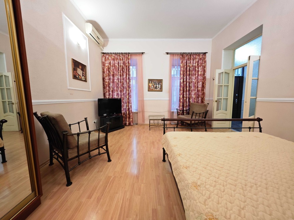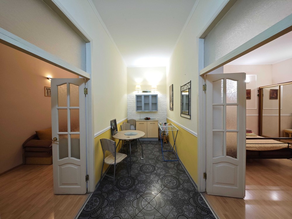 Двухкомнатная квартира в тихом центре рядом с парком Шевченко, ул. Еврейская /Пушкинская. Первый этаж, кондиционер, Wi-Fi, оптоволокно, телевизор, утюг, двухконтурный котел, микроволновая печь, электрочайник, фен. В спальне 2-спальная кровать, шкаф, телевизор. В гостиной диван раскладной, шкаф, комод. Между гостиной и спальней обеденная зона. Кухня, газ, духовка, отопление индивидуальное, ванна, стиральная машина, вода без счётчика, можно лить сколько угодно!