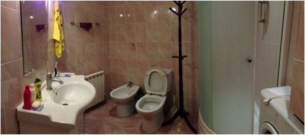 Две отдельные спальни, в одной периодически бывает хозяин квартиры. Есть просторная гостиная с кухней. Санузел европейский, с душем, стиральной машиной и биде.