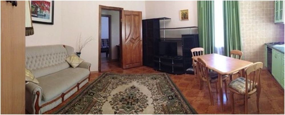 Сделан свежий евроремонт. Стены покрашены, напольное покрытие в гостиной кафельное с подогревом, в спальнях ламинат с ковриками. Мебель новая, в спальнях деревянные кровати с пружинными матрасами и шкафы, в гостиной раскладной диван, стенка с телевизором и аудио системой. В зоне кухни есть обеденный стол и кухонная стенка со всей бытовой техникой: мойка, газовая плита, духовка, вытяжка, микроволновая печь, электрочайник. В стоимость аренды включены коммунальные.