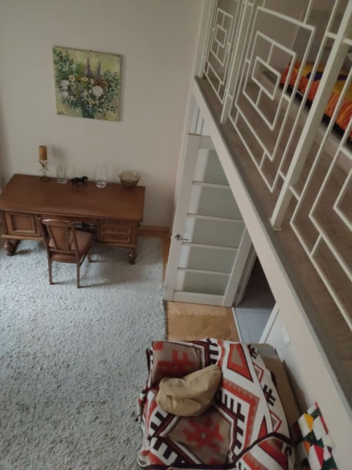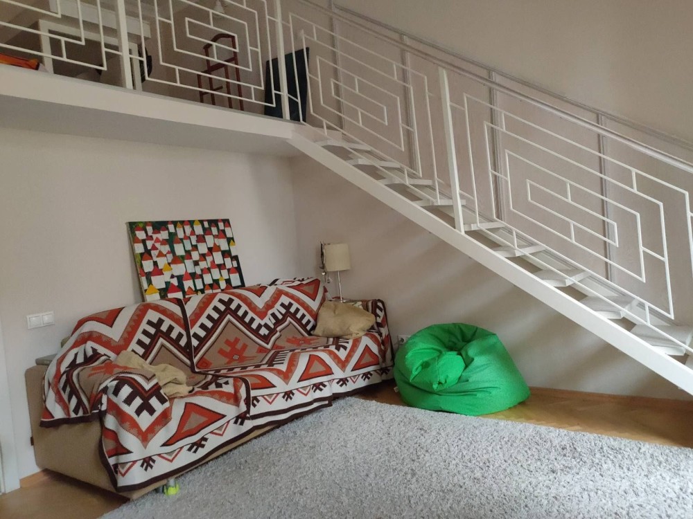 Комната с балконом. Сама комната 20 квадратных метров со вторым уровнем, где расположено спальное место.