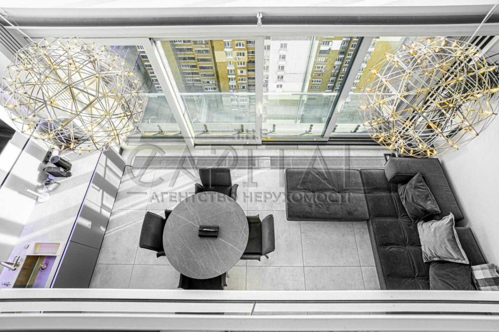 Панорамні вікна, що простягаються на вражаючі 6 метрів у висоту, занурюючи вас у захоплюючий вид на центр Києва.