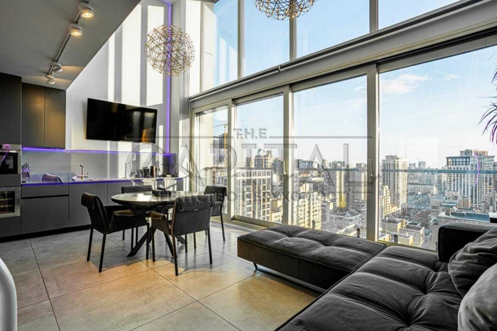 В Оренду пропонується чудова квартира в центрі столиці з наймовірним панорамним видом площею 130 м2, що має три поверхи вишуканої атмосфери з унікальними дизайнерськими ремонтом.