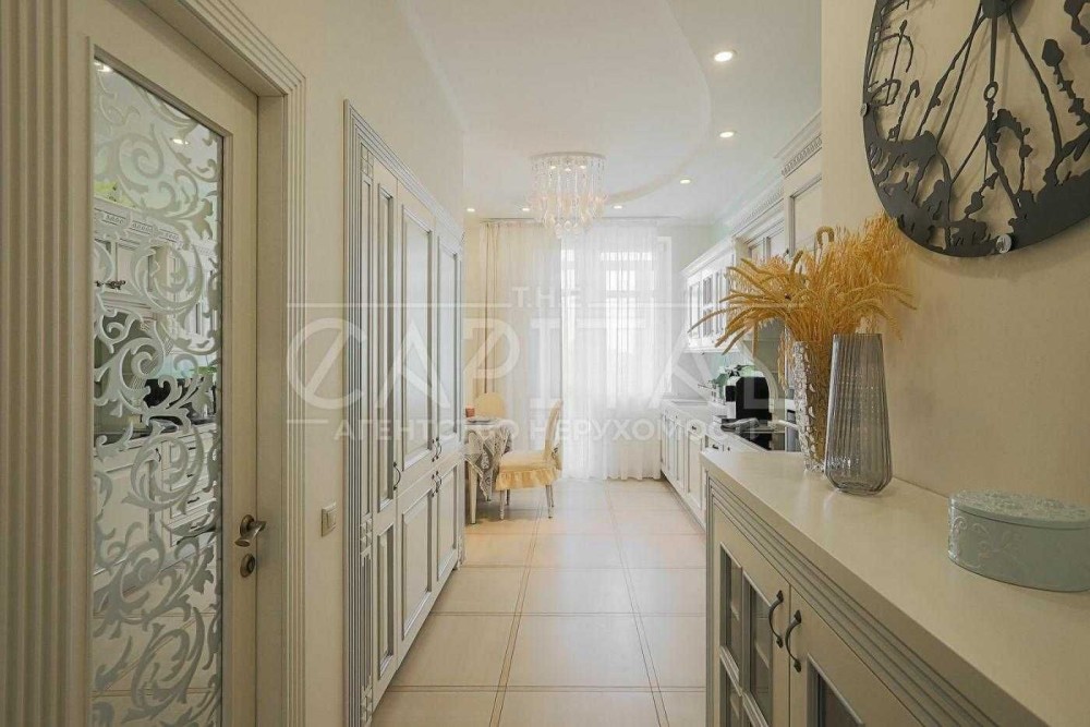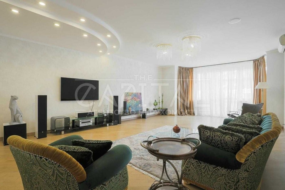 Якщо вже жити на Печерську - то багатим. У великій квартирі 170 м2, просторій і напрочуд світлій. Вітальня 60м2, окрема спальня, кабінет, кухня. 2 сан вузла ванна з гідромасажем/душ. Великі вбиральні і ну дуже багато місця для зберігання.