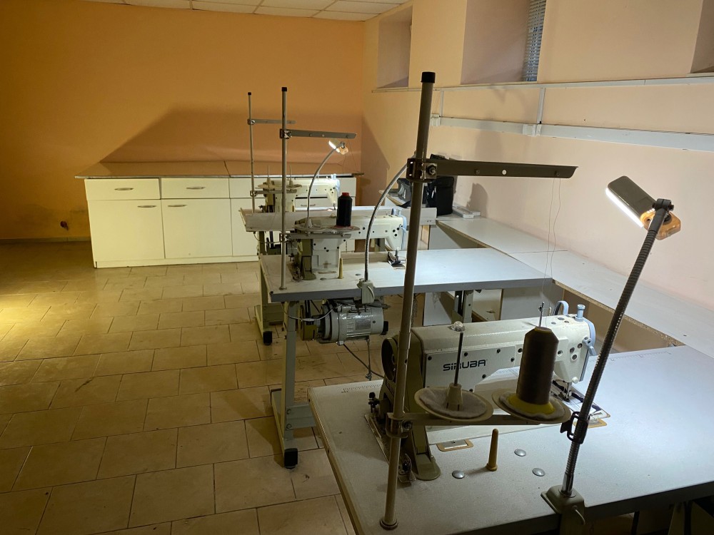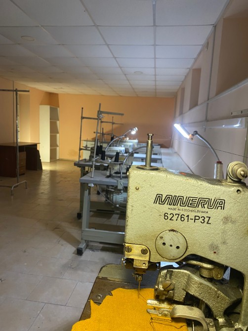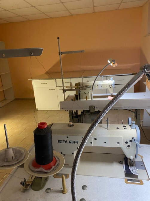 Швейный цех (2 большие комнаты + 1 небольшая = 70 кв.м) с прямо строчками Siruba( 3 шт), оверлоками brother , промышленной петельной и скорняжкой. Большой раскроечный стол и паровой утюг.