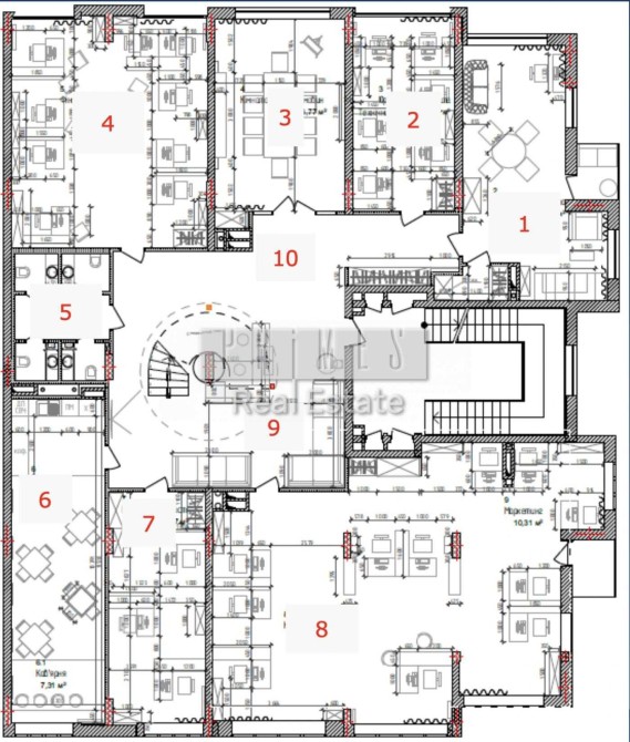 Планування включає 4 кабінета, переговорну, кабінет керівника. Площа загальна 429,26м 2 .