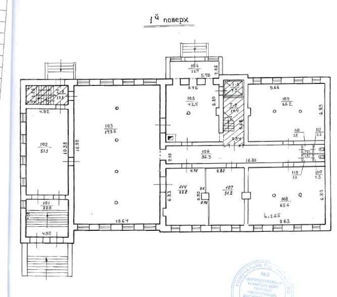 Состоит из просторного зала с высотой потолков выше 5м + 4 отдельных кабинета.
