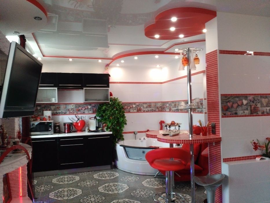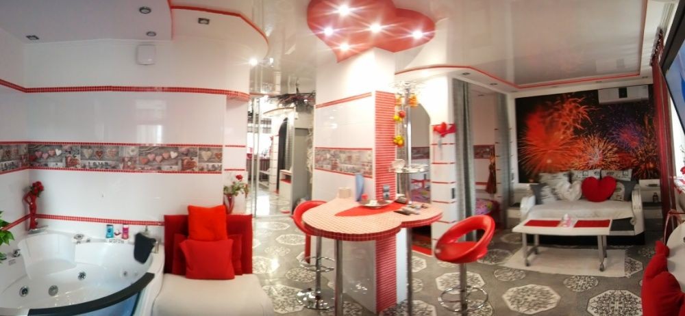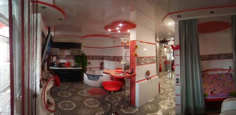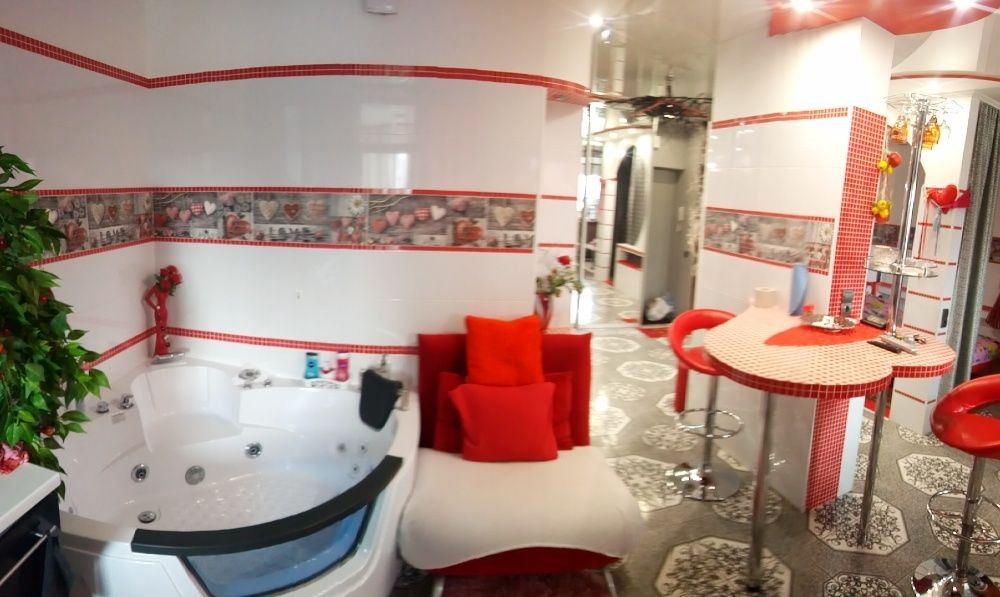 Креативная, романтическая студия со стильным, элегантным дизайном и большой джакузи покорит вас а игра света и завораживающий интерьер создаст милую и праздничную атмосферу. Интернет скоростной-бесплатно!