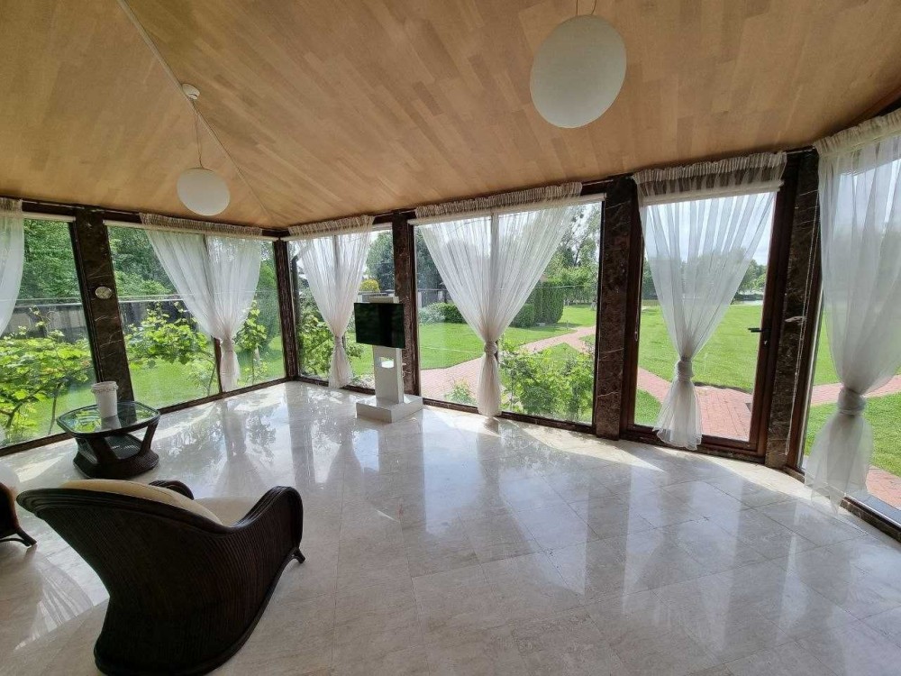 полы с подогревом, каминный зал, застеклённая терраса.