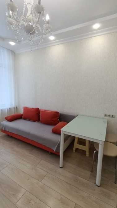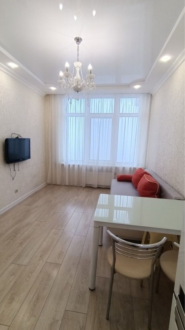 Аренда квартиры в ЖК 35 Жемчужина на Литературной,парк Юность.Планировка квартиры кухня студия с диваном и отдельная спальня с кроватью,санузел с ванной и балкон с видом на частный сектор и боковое море.Долгосрочно без выселения на лето