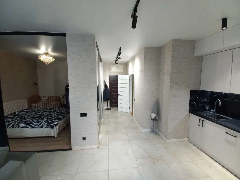 Квартира в гарному стані з балконом. Кухня студія 20 метрів і виділеної спальне місці. Вбудована висока шафа. Санвузол суміжний. Душова кабіна. Кондиціонер. Вбудована кухня, вся техніка, посудомийна машина.