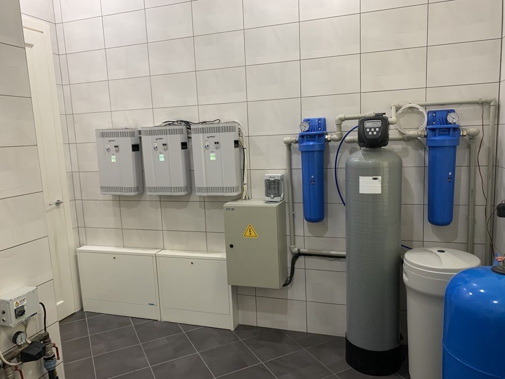 Опалення за допомогою двох газових котлів, також є дизельний котел. Зроблена ревізія.