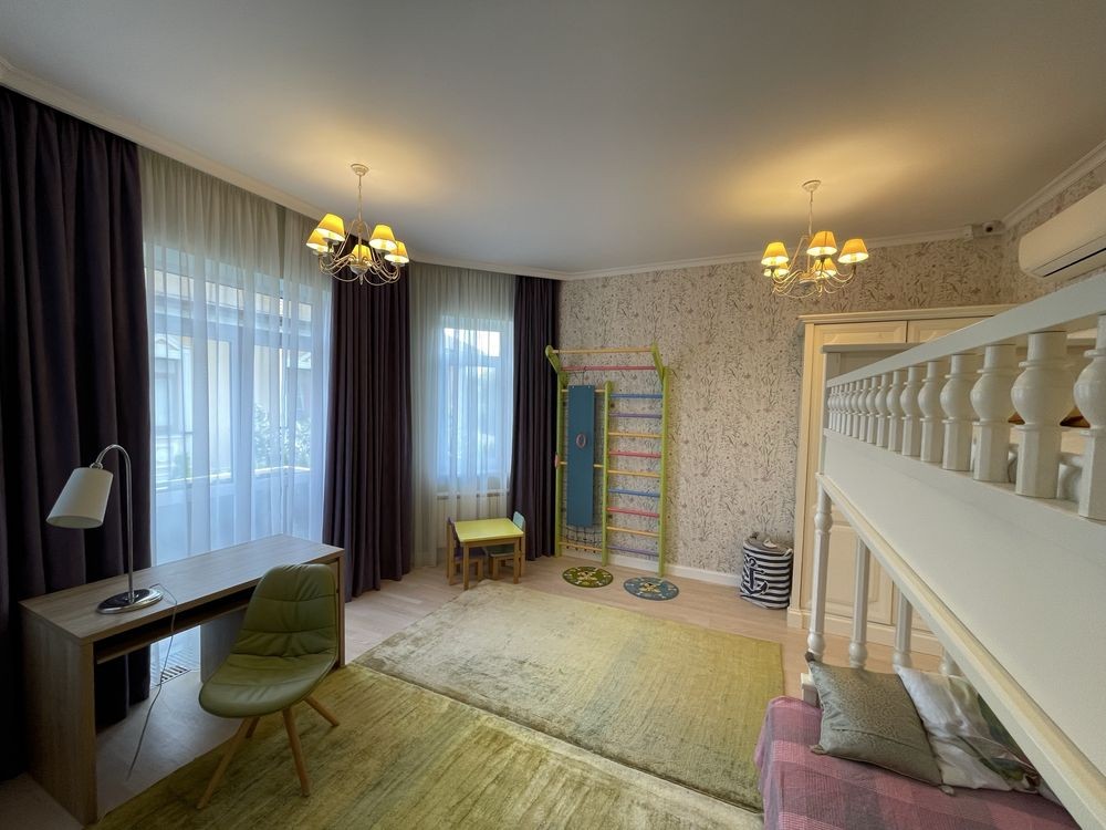 - просторий зал з каміном, кухня, столова, спальня, с\в, котельня, тех приміщення, гараж - на першому поверсі. Теплі водяна підлога. Висота стелі 3.2м.