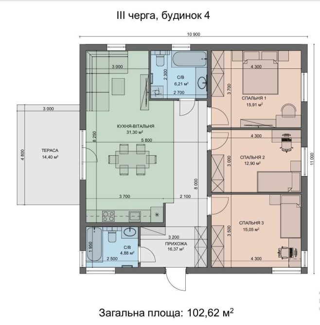 • Загальна площа 100 м2