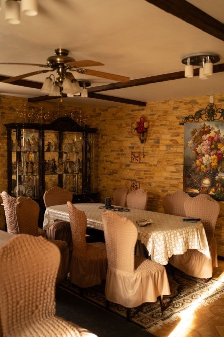 · 2-й поверх: 2 спальні, балкон, 1 дитяча кімната, 1 кабінет, 1 санвузол, 1 велика зала (камін, шкіряний диван, телевізор).