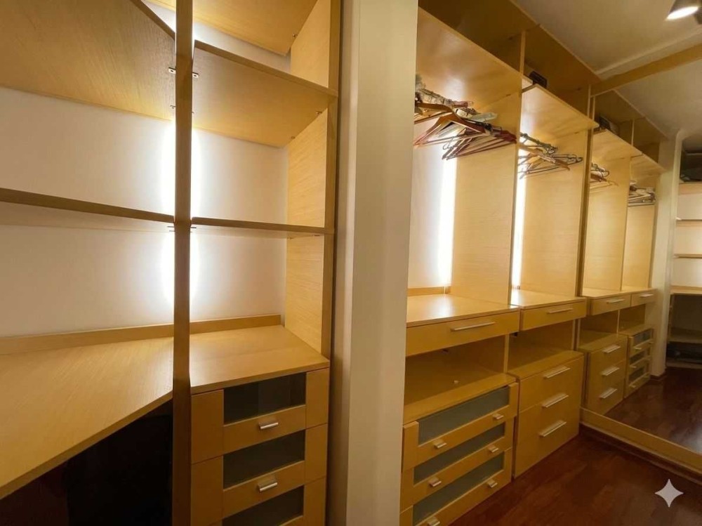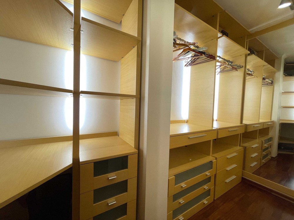 Є місткі шафи для одягу, взуття та речей, а також окрема гардеробна кімната.