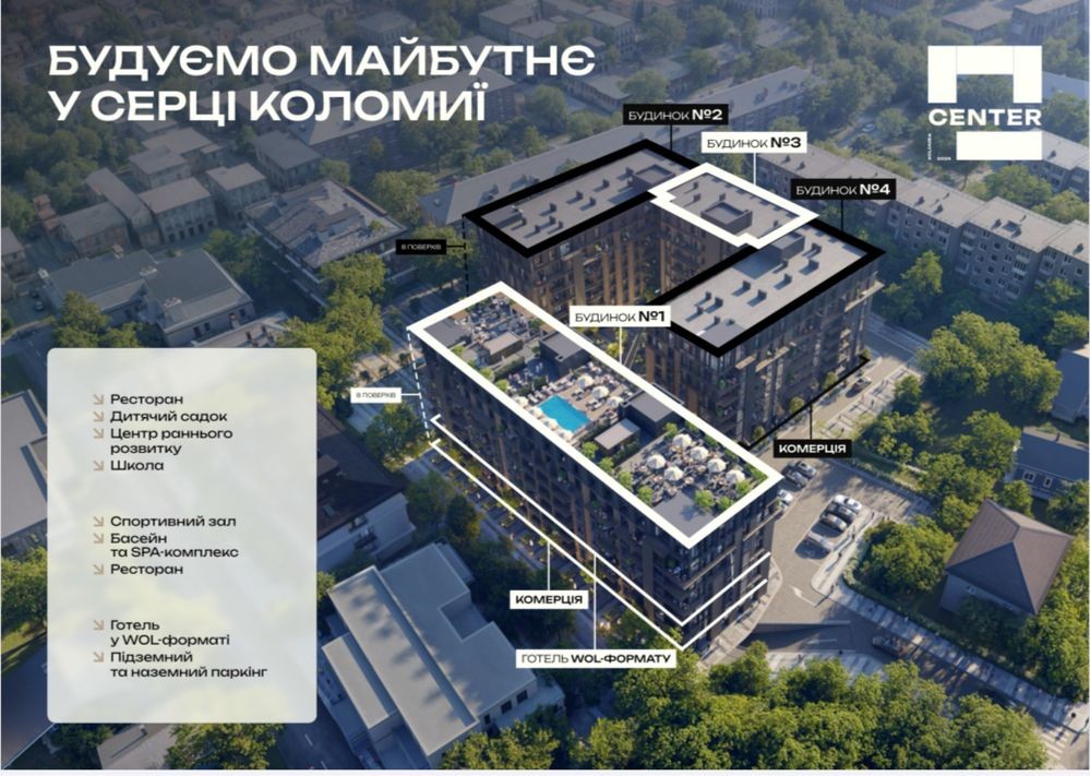 В комплексі буде 4 монолітно-каркасних будинка,