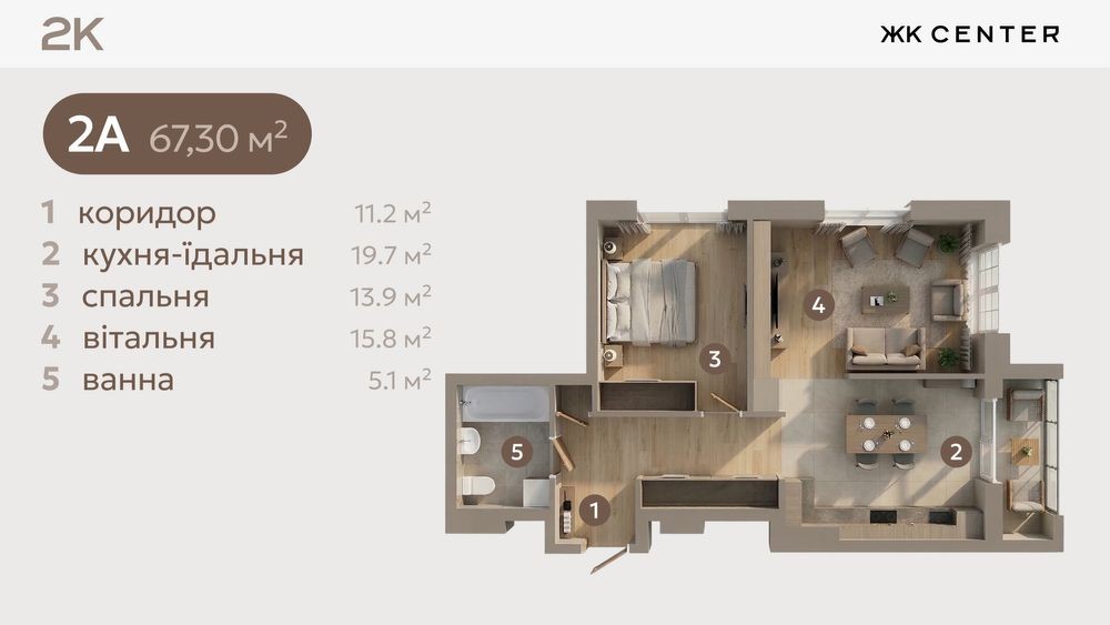 • Загальна площа 67.3 м2